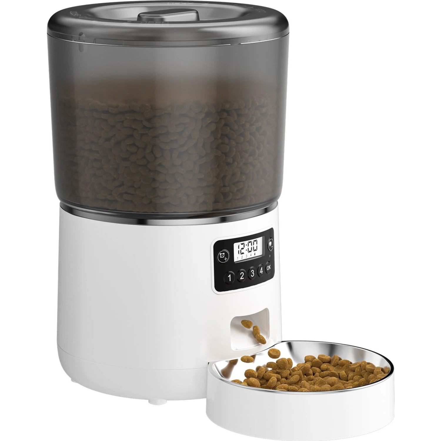 Bueteka Smart Feed Automatic Programmable Anti-Jamming Food Design Timed Cat Feeder, 4-lit