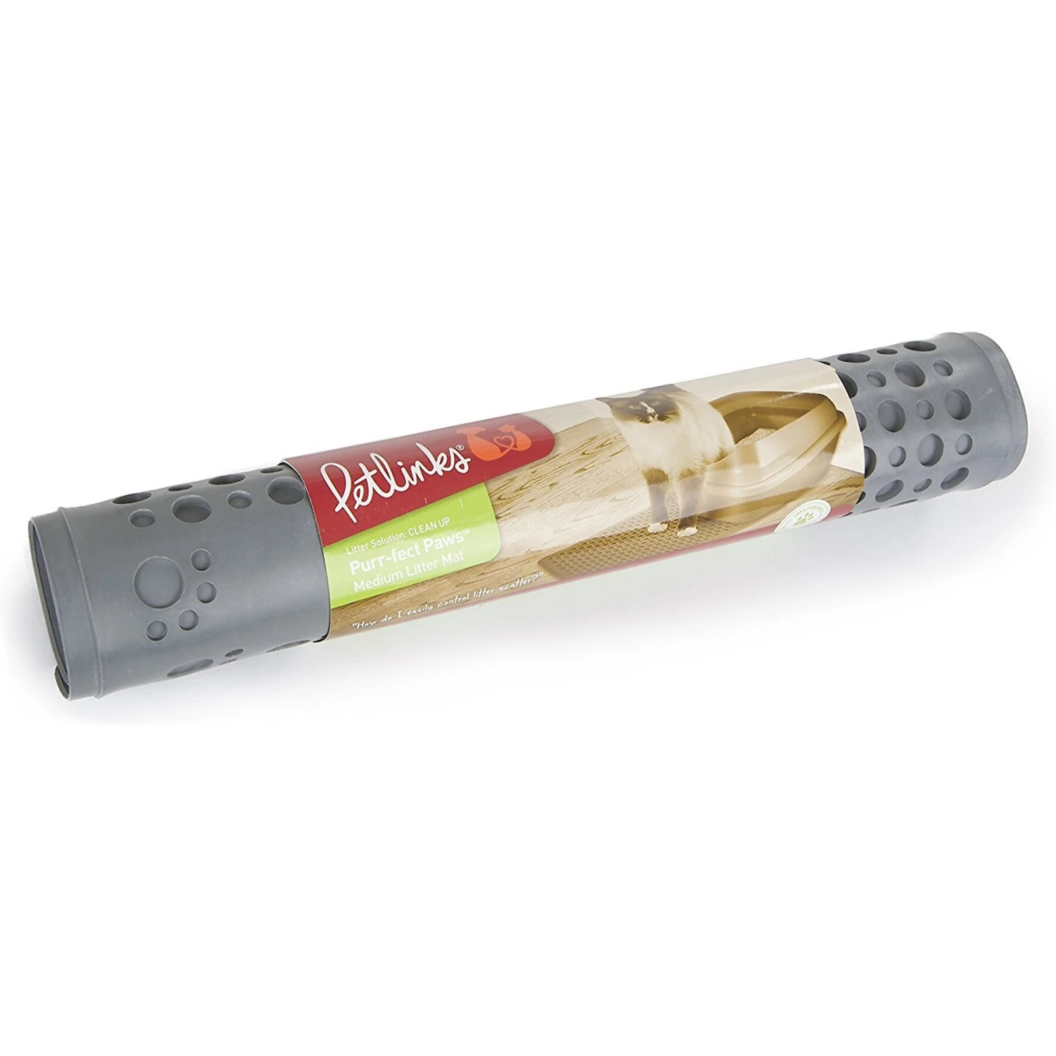 - This mat’s unique design is meant to spread your cat’s paw-pads apart to force stray litter off.