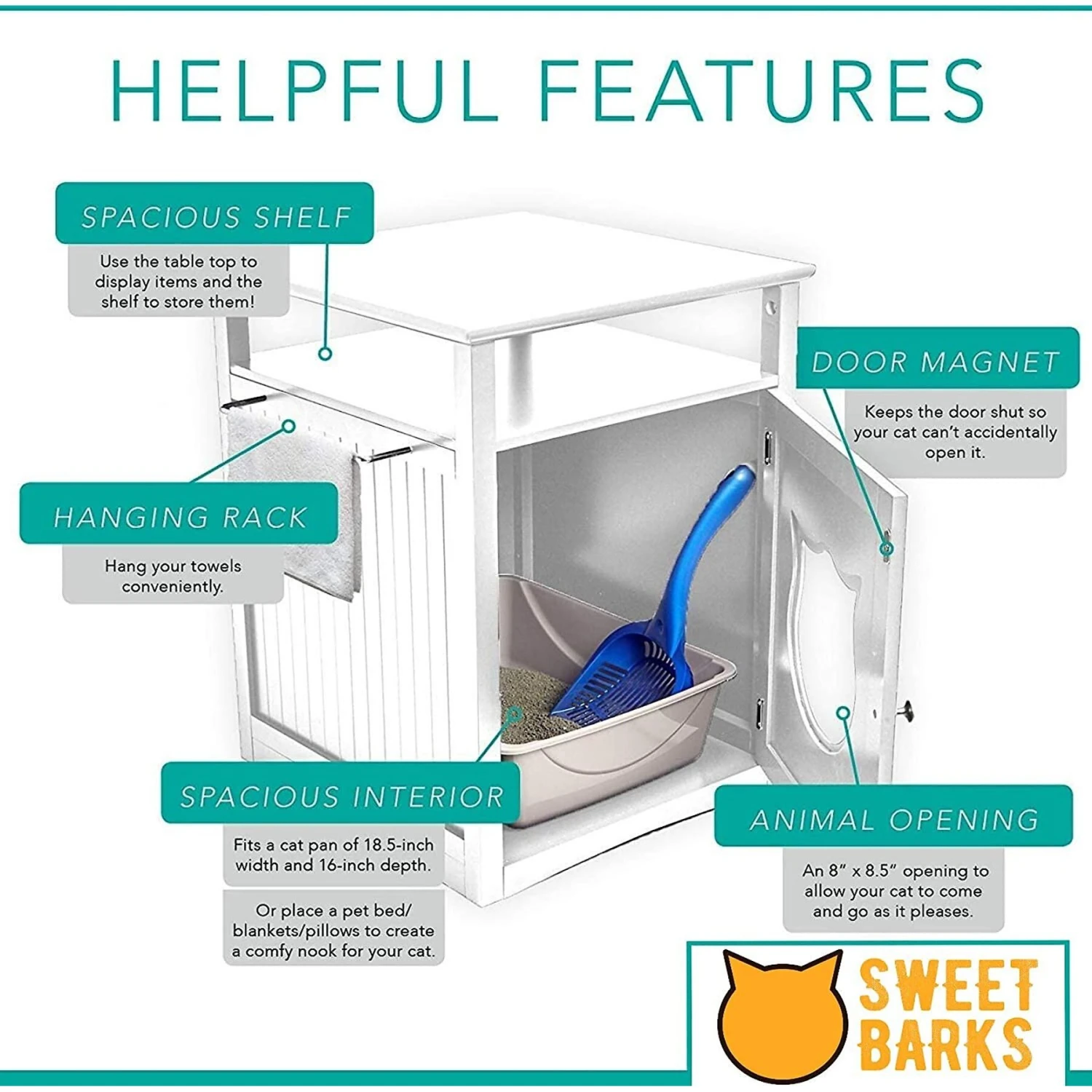 Sweet Barks Wooden Nightstand Cat Litter Box Enclosure
